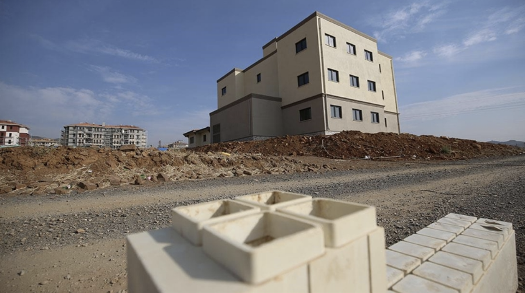 Kahramanmaraş merkezli depremlerin yıkıma yol açtığı Gaziantep'in Nurdağı ilçesinde, birbirine geçmeli fiber kompozit bloklarla inşa edilen köy evi, kreş ve 6 dairelik konut teslime hazır hale getirildi.
