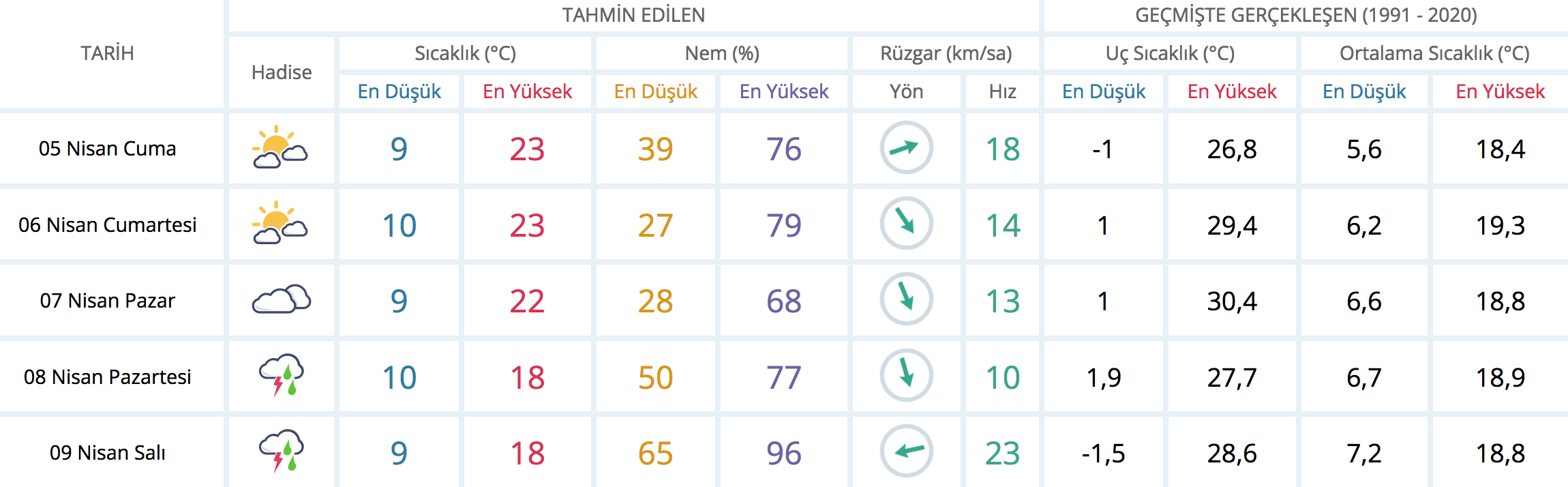 5 GÜNLÜK TAHMİN