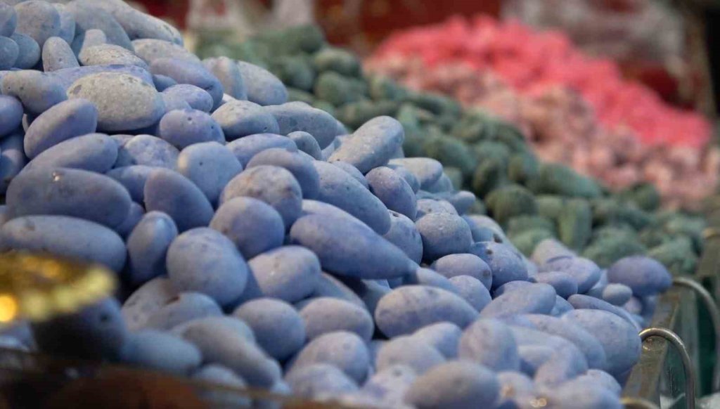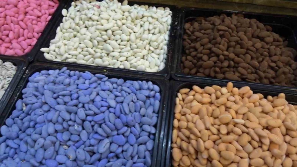 Tarihi Almacı Pazarı'nda çeşit çeşit badem şekeri müşterileri bekliyor